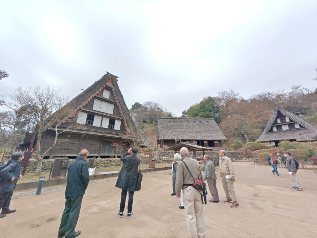 日本民家園では、日本の原風景ともいえる古民家の保存・活用の取り組みを学び、